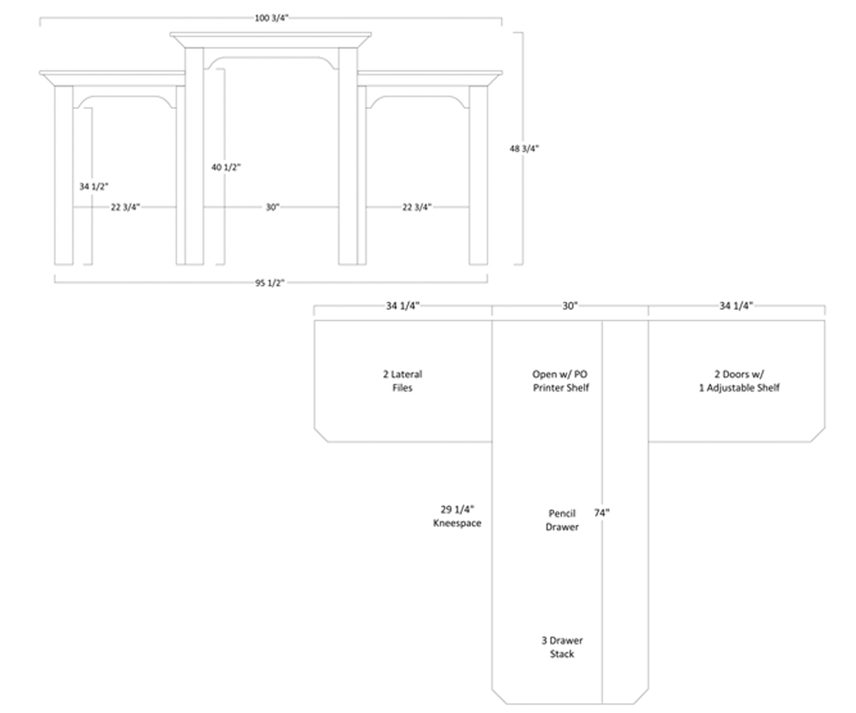 Desk: 98″W x 74″D x 30½”H